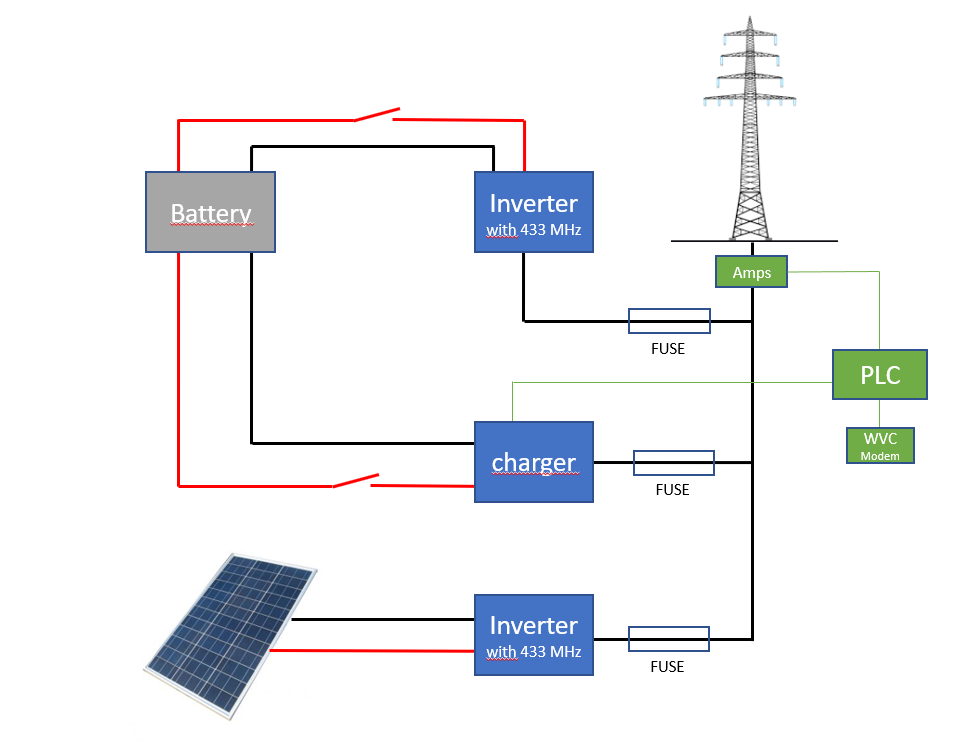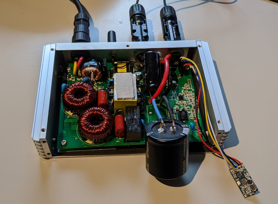 Nice – I set up similar with sun-1000gtil2 it a nice inverter works with batteries or solar panels directly it also has GTI limiting function. but I can also control directly with a using a digital pot on the external port… one day I will try to figure out the comport data coming off it just never tried yet